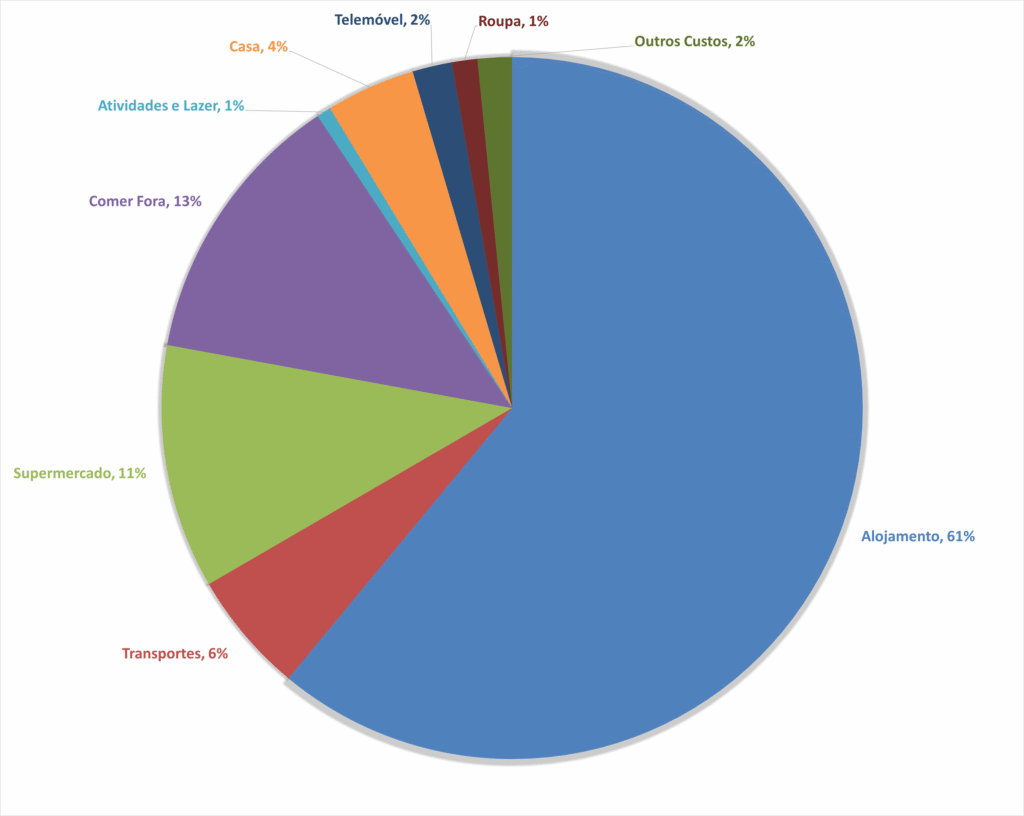- Alojamento: O custo dos primeiros dias no AirBnB, mais a renda do nosso quarto incluindo todas as despesas;